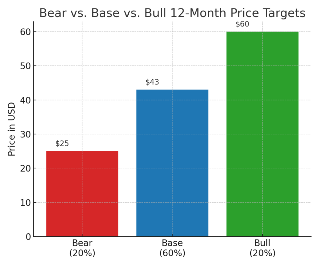 In summary, the DCF valuation supports our scenario targets: Intrinsic value spans roughly $20 (bear) to $60+ (bull), with a base around the mid-$40s. At the current stock price, much of the turnaround upside is not fully priced in, while a complete failure is also not priced in (the market seems to be discounting a partial improvement). This asymmetry – more upside than downside relative to intrinsic scenarios – underpins our positive recommendation. Investors should note DCF outcomes are sensitive to inputs (especially discount rate and terminal growth), but we have taken a relatively conservative stance (10% hurdle, low terminal growth) consistent with the stock’s risk profile.
