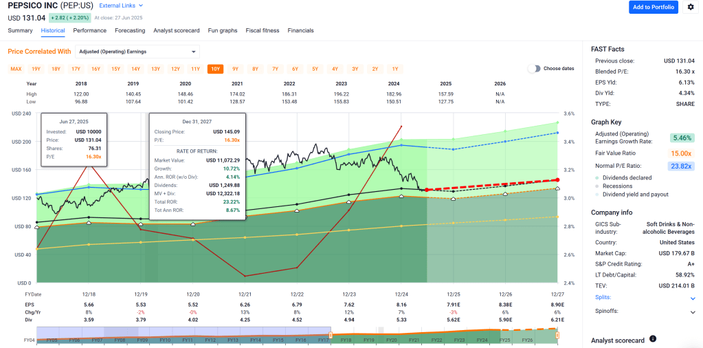 | Buy Zone – Ultra Value | <$128.63 | (PEP is ~$131, just above “Ultra” deep-value threshold) |