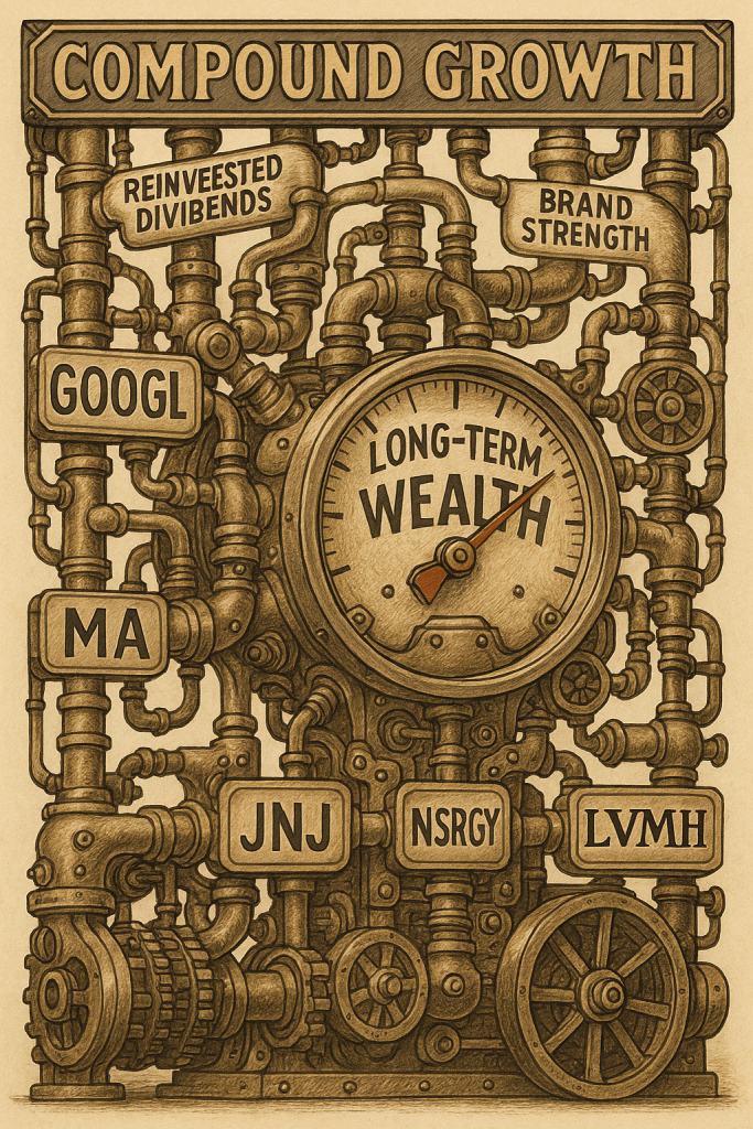 “Safe compounders” like these are rare in that they offer both competitive growth and defensive resilience. Owning this basket of five world-class companies, an investor can reasonably expect ~10–15% annual total returns over the next decade without losing sleep over volatility or value erosion. Each company has a proven playbook for compounding earnings: be it Alphabet’s innovation engine and cost discipline, Mastercard’s secular growth and pricing power, J&J’s steady pipeline and dividend policy, Nestlé’s brand management and incremental improvements, or LVMH’s luxury empire and savvy acquisitions. While short-term market swings will come and go, the underlying cash flows and dividends of these businesses should trend ever upward, ultimately driving shareholder wealth higher.