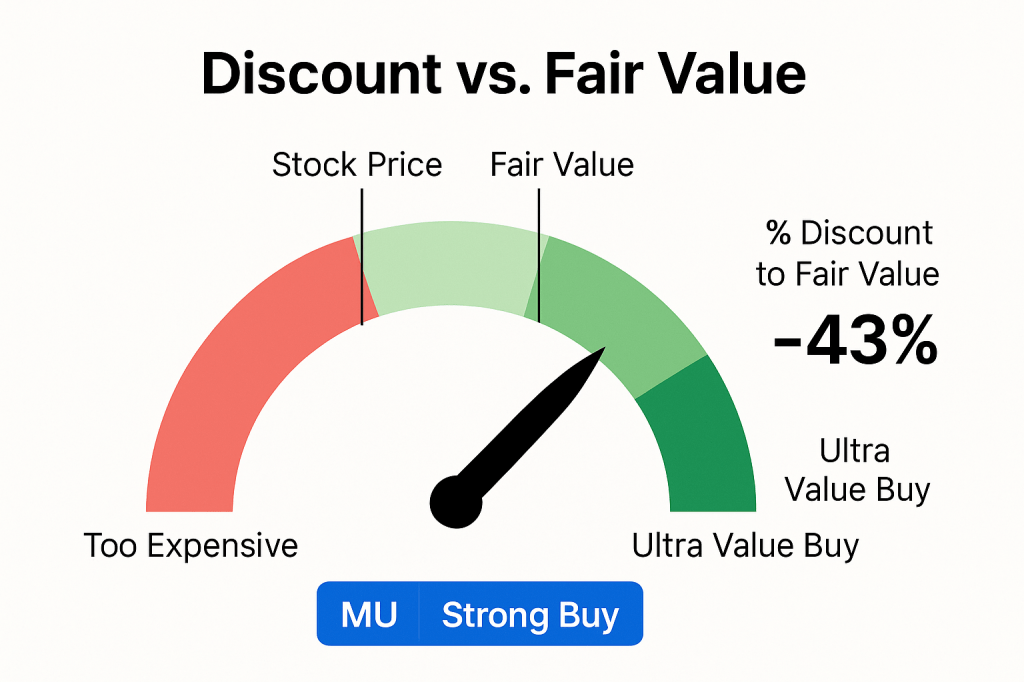 | Micron (MU) | ~11× P/E | +54% EPS | ~0.7% |