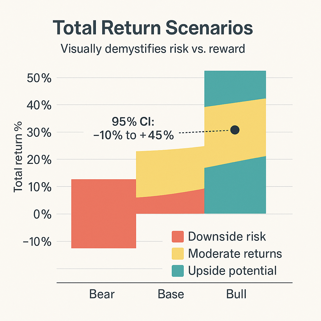 Illustrative fan chart of Arista’s annual revenue under bearish (15% CAGR), base (20%), and bullish (25%) growth scenarios. Even in a slower macro case, AI demand could sustain robust double-digit growth (gray band), underscoring the secular tailwind.