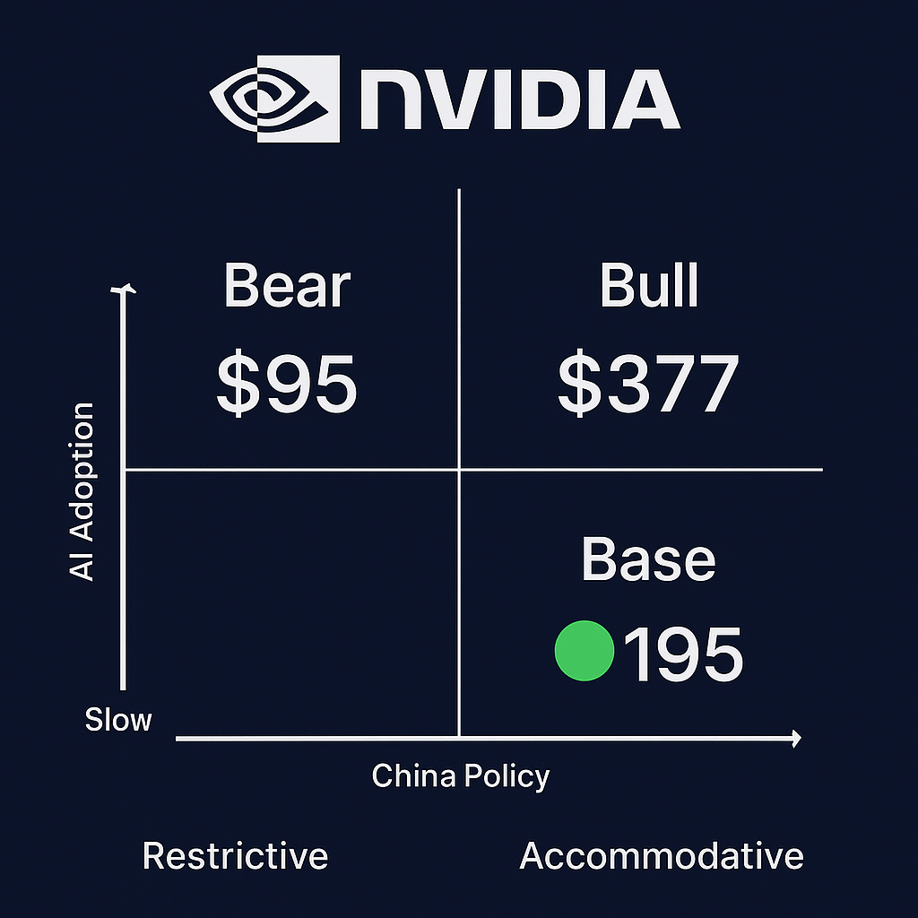Our base case DCF lands at $195 per share, using conservative assumptions that account for geopolitical friction. Even with China exposure haircuts in our bear scenario, we see a floor around $95—a compelling risk-reward profile for investors who understand both the opportunity and the execution risks.