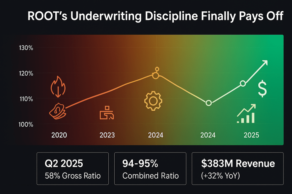 After years of burning cash in pursuit of growth, ROOT has achieved something many thought impossible: sustainable underwriting profitability. The quarter’s ~58% gross loss ratio and ~94-95% combined ratio indicate Root is collecting more than it spends on claims and expenses—a critical inflection point versus the disastrous 2022-23 period.