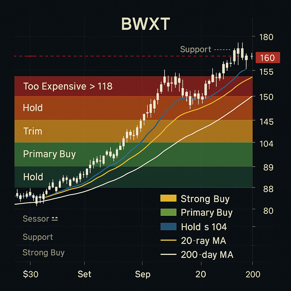 Our recommendation reflects valuation discipline rather than business skepticism: hold existing positions with covered call overlays, trim on strength above $160, and prepare to add aggressively if pullbacks create entry opportunities in the $80s. Great businesses at great prices beat great businesses at any price, and BWXT currently falls in the latter category.
