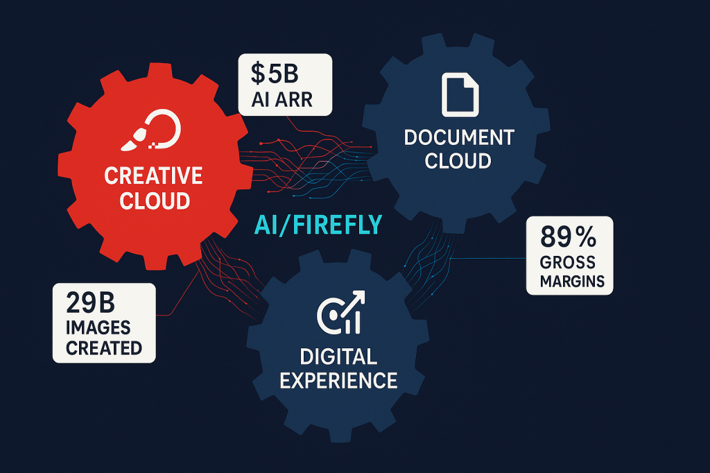AI monetization exceeds expectations. Adobe’s AI-influenced ARR surpassed $5 billion, while AI-first products already exceeded the company’s $250 million year-end target during Q3—a full quarter ahead of schedule. Users have now created over 29 billion images using Firefly, demonstrating real adoption rather than just trial usage.