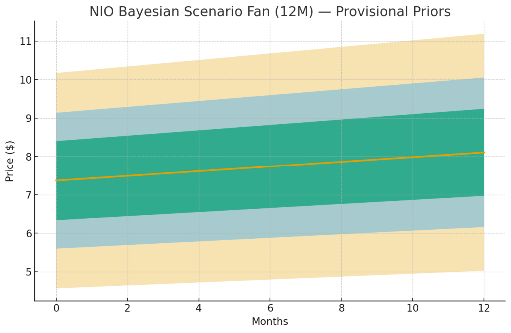 Our stance is Tactical Test Only – small position size, strength-based additions, and disciplined invalidations. The 12-month outcome hinges on whether operational improvements can justify current pricing, or if gravity eventually wins. From our research data, NIO screens as expensive at current levels, but momentum-driven opportunities can emerge for tactical traders willing to respect strict risk controls.