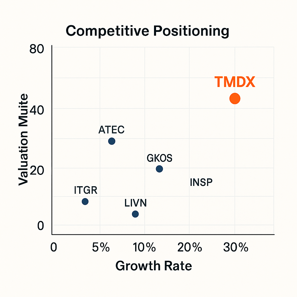 - TMDX: High growth (38% YoY), premium valuation, unique platform advantage