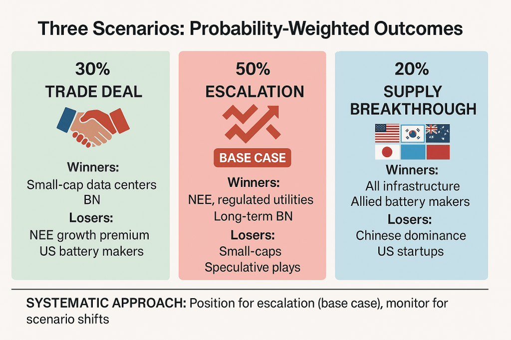 This isn’t a quarter-to-quarter trade. China didn’t just create a crisis—they created a moat for infrastructure owners who control physical assets that can’t be exported, replaced, or bypassed. NEE’s grid. Brookfield’s real estate. The poles, wires, and land that exist regardless of what Beijing decides about battery exports.