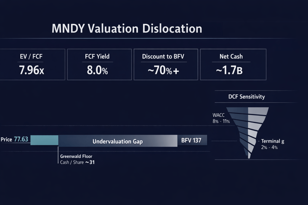 At $77.63, Monday.com is a profitable, cash-rich software platform being priced as if its business model is obsolete. It isn’t. Growth is normalizing, not evaporating. The balance sheet provides a genuine margin of safety. The reverse DCF implies expectations so low that even modest execution should generate positive returns.