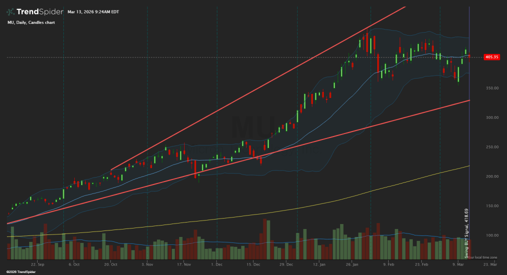 - TrendSpider, Daily chart for Micron Technology (MU), accessed March 13, 2026.