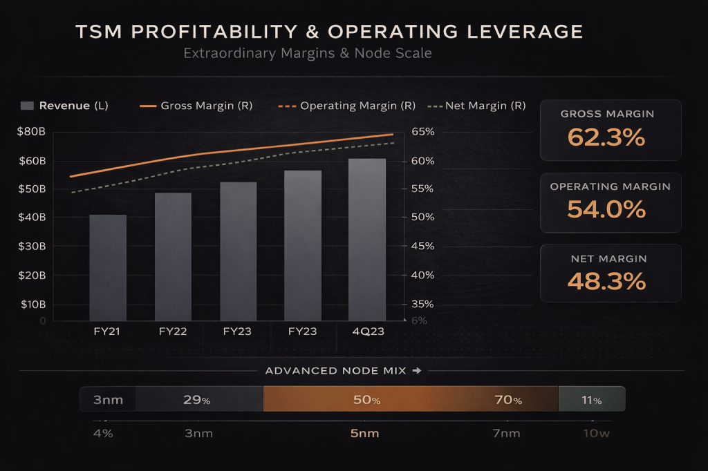 The Q4 2025 numbers deserve a second look because they reveal something about TSMC’s operating leverage that most investors underappreciate.