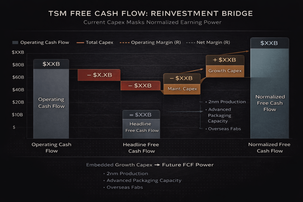 One of the most common mistakes analysts make with TSMC is looking at raw trailing free cash flow and concluding the stock is expensive. That view ignores the deliberate reinvestment happening right now.